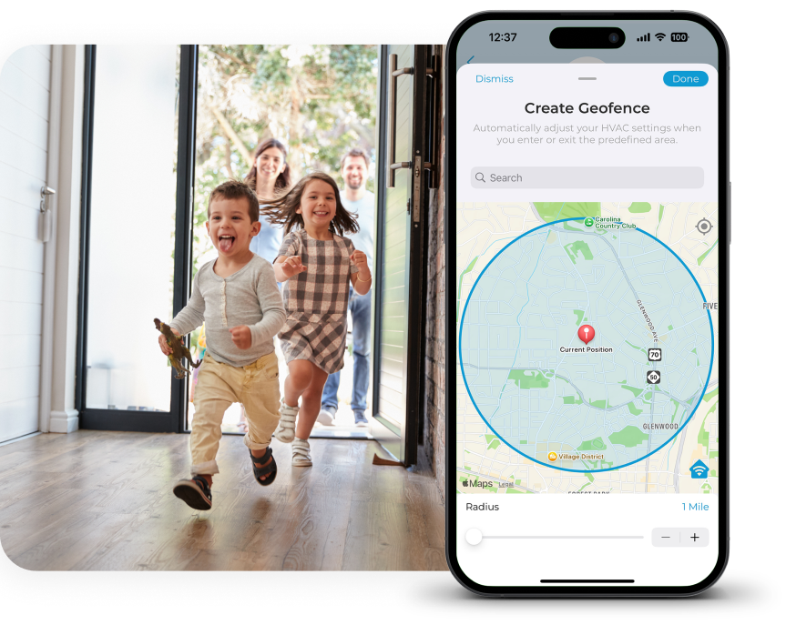 Location based controls for your air conditioner. Your mini-split automatically switches off after you leave and turns back on before you arrive.