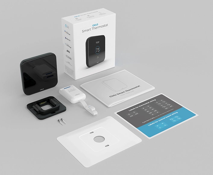 C-Wire Adapter, Wall Mount Kit, Installation Guide & Wire Labels, Cielo Smart Thermostat, Thermostat Wall Plate & Backplate
